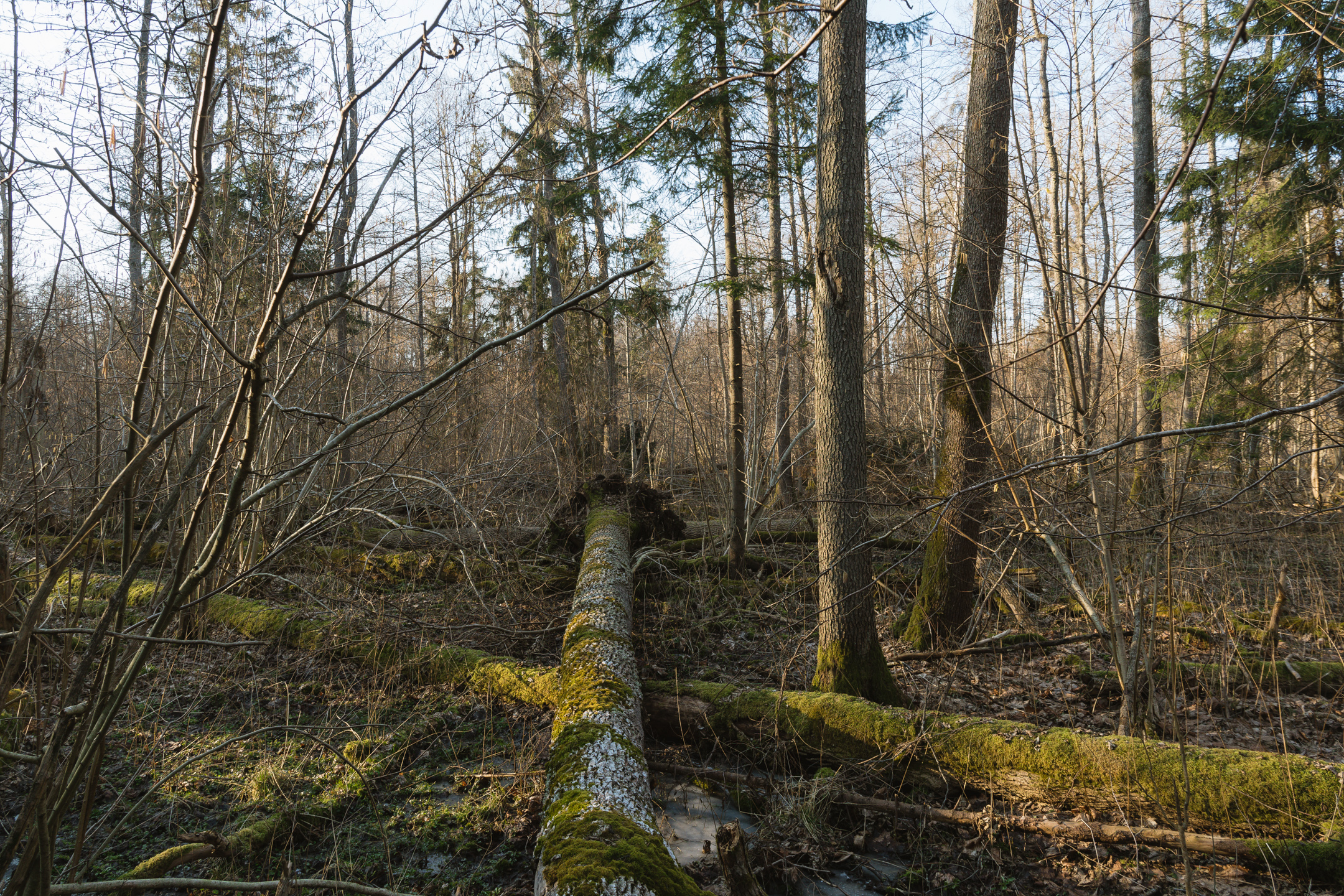 Animal tracks in Białowieża Forest snow – wolf and ungulate sign in old-growth zone